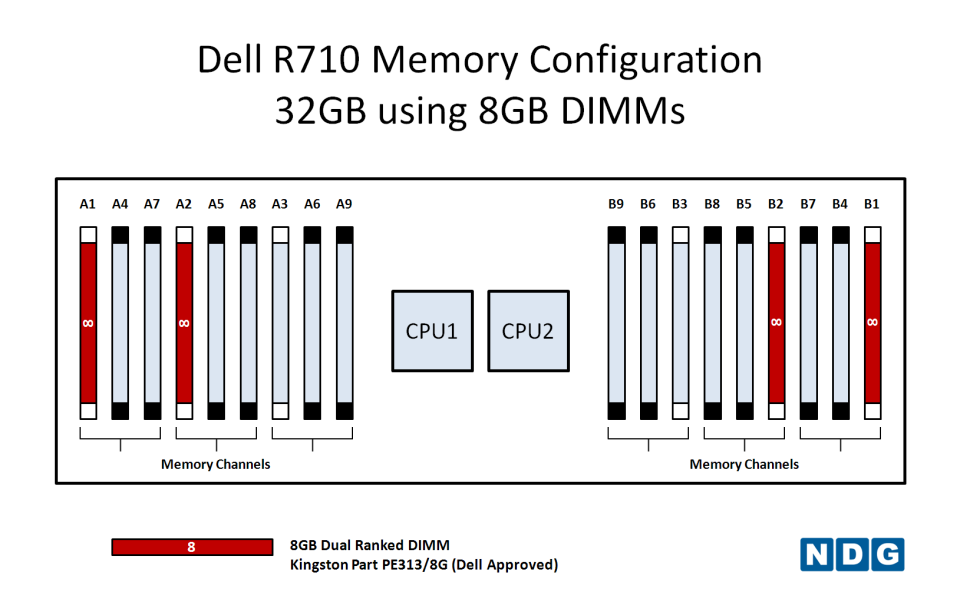 • Dell R710 Memory Configuration 32GB using 8GB DIMMs
