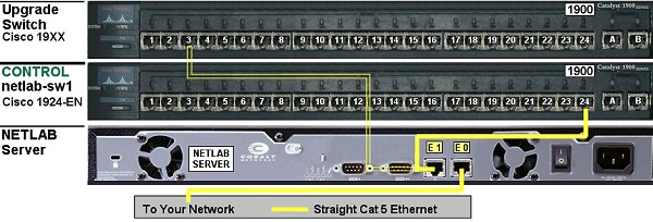 You will use NETLAB+'s Ethernet Interface 1 (eth1 or E1) to accomplish this upgrade. Temporarily